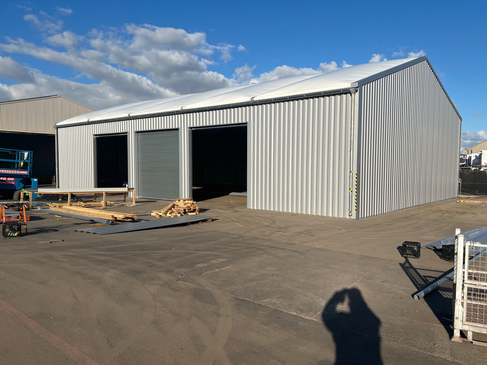 The double-layer Duraskin B1673 PVC roof is fire-proof to DIN 4102/B1 and M2 and provides an insulating layer of trapped air. Corrugated steel sheet walls house three electrically operated roller doors that are insulated and the maximum width and height possible.