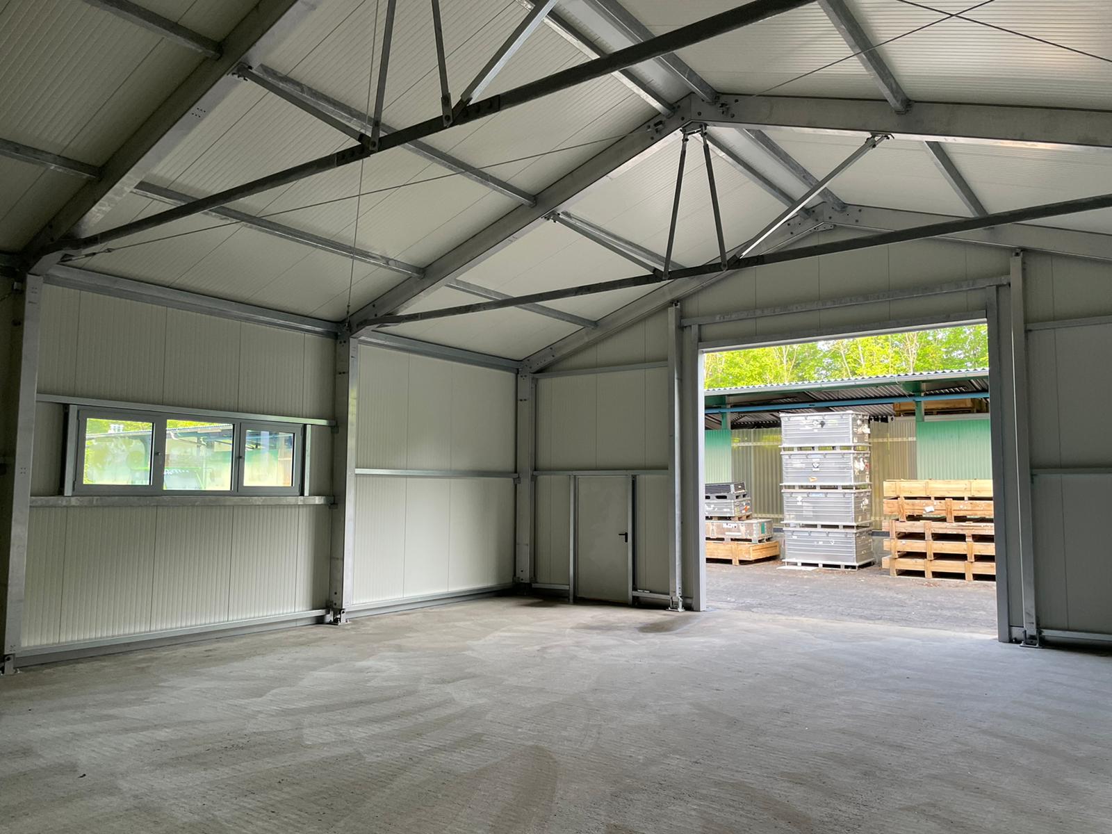 To help keep it warmer inside the warehouse during winter months, the building is constructed with insulated 80mm thick sandwich panel wall sections and insulated 80/120mm thick sandwich panel roof. The roof and walls are mounted to an aluminium frame which is anchored to the concrete floor with anchoring plates and dowels. Steel wires and beams between the eaves provide additional stability, strength and building longevity.