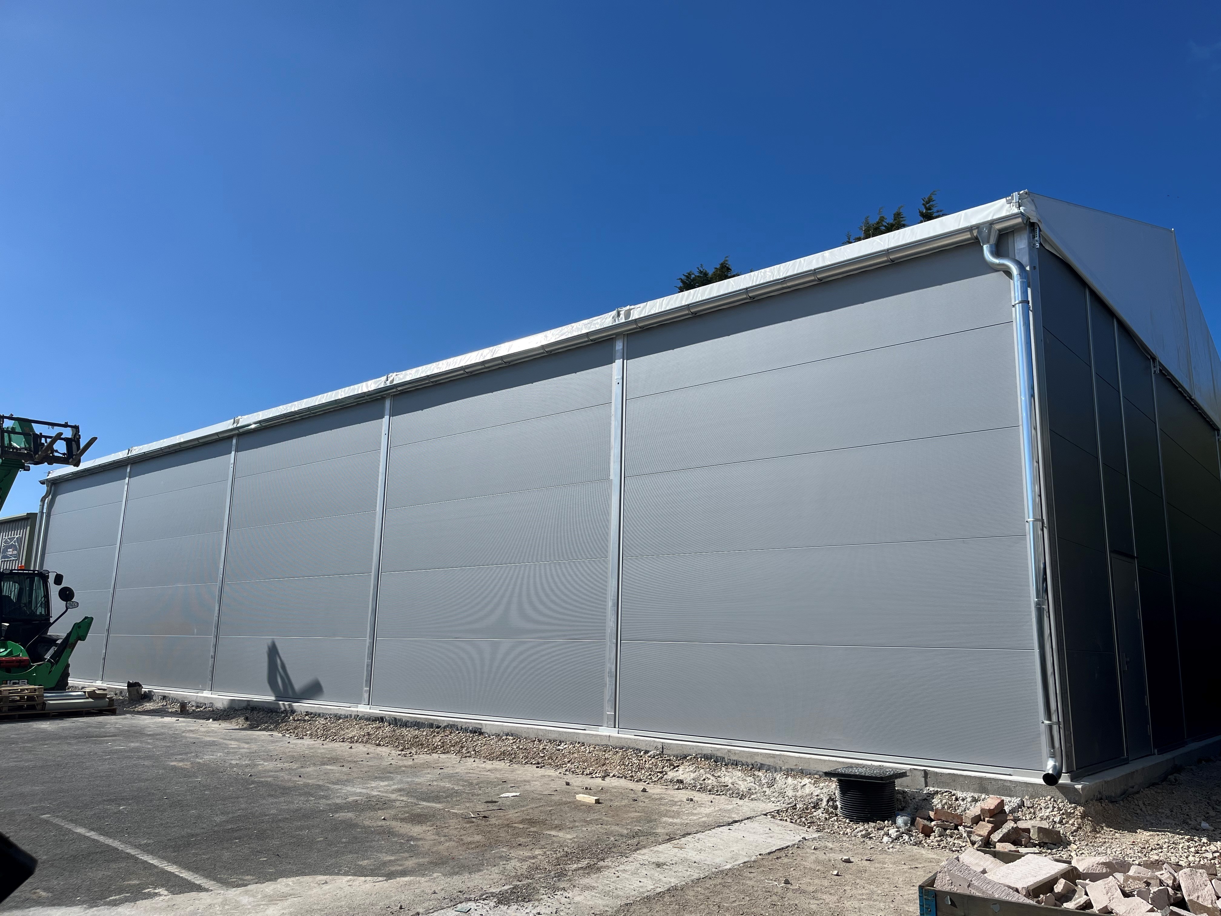 The aluminium-framed building is constructed to withstand a wide range of weather conditions. It has snow and wind load capacities that meet UK building regulations. The functional design and high-quality materials make the building ideal for industrial storage, logistics and more.