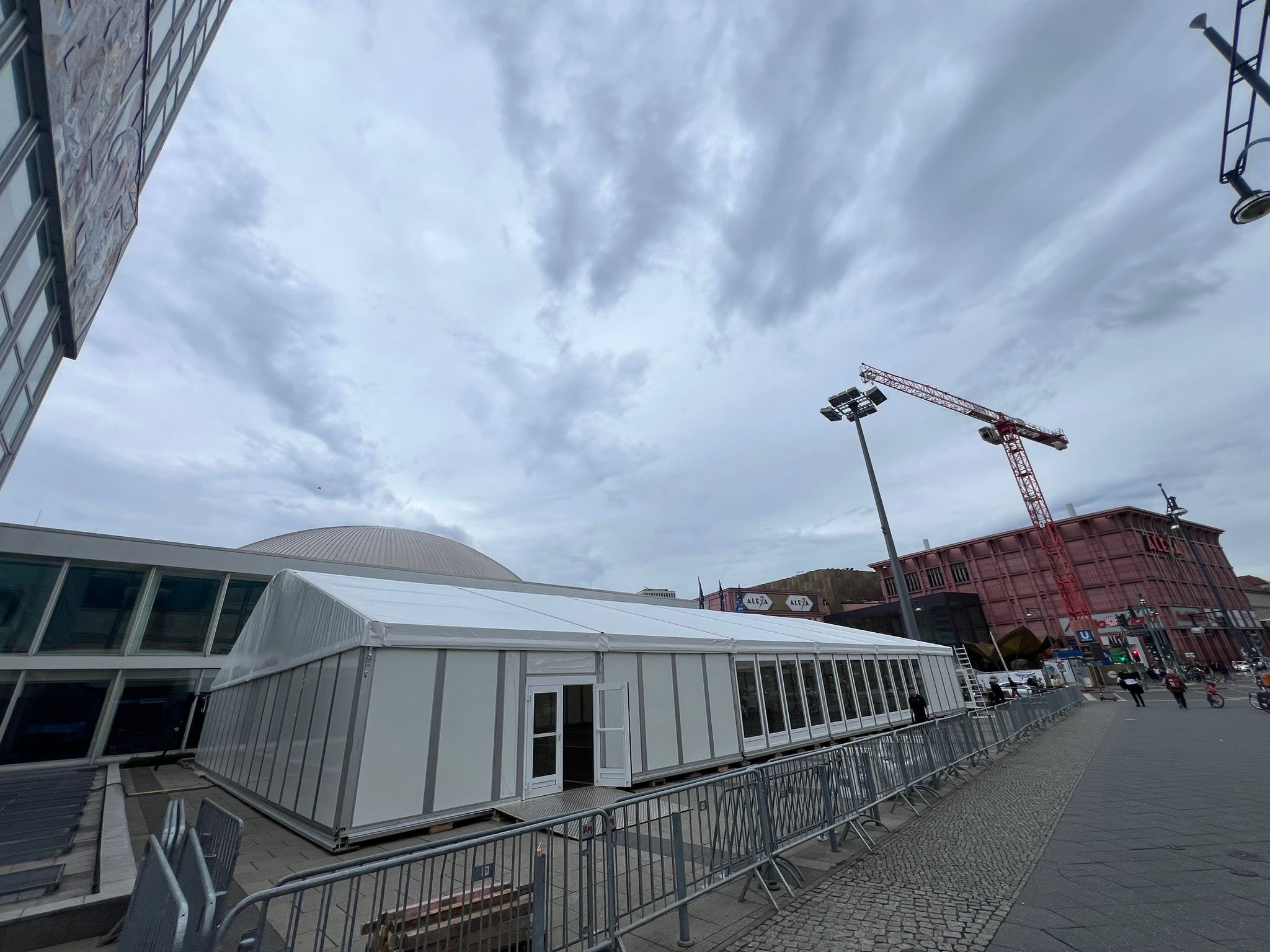 With this custom-made tent, we have created a flexible and durable solution that meets all customer requirements. The curved arch roof and gable triangles are made of translucent PVC that creates a bright atmosphere inside the tent.