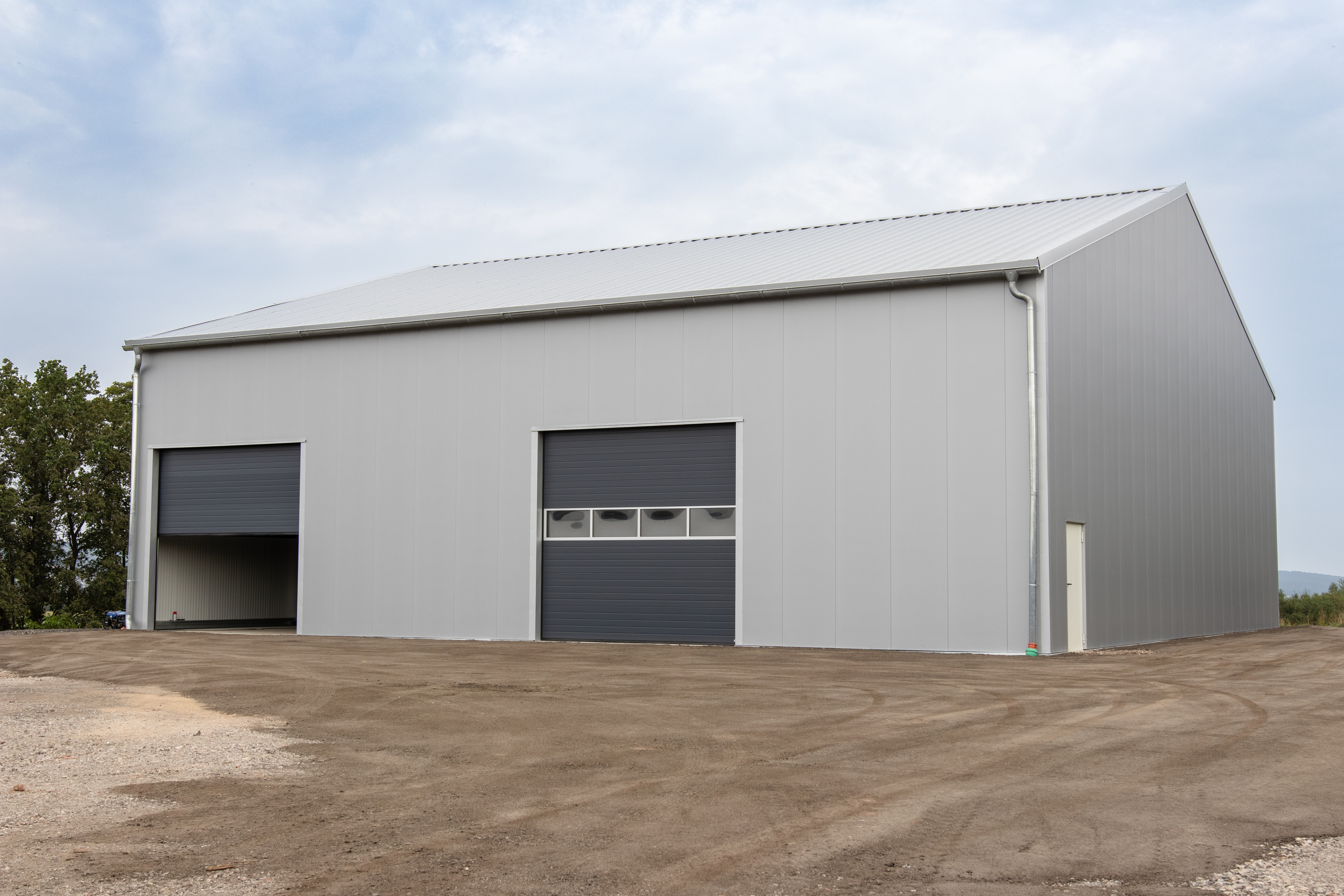 The strong aluminium frame is tailored to your needs, quick to erect and provides uninterrupted space across the full width of the building. Walls are made from steel corrugated panels for strength. These can be doubled up and a foam layer added between them to provide insulated sandwich panel walls.