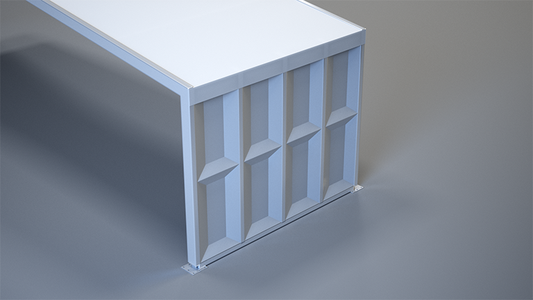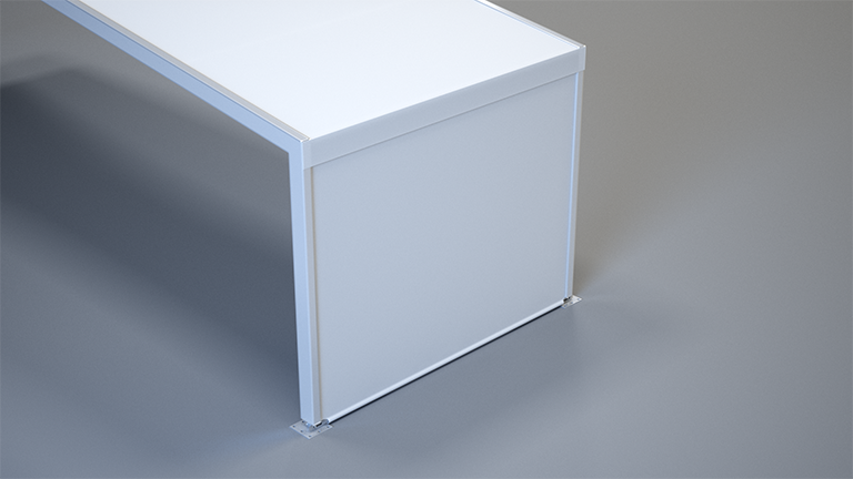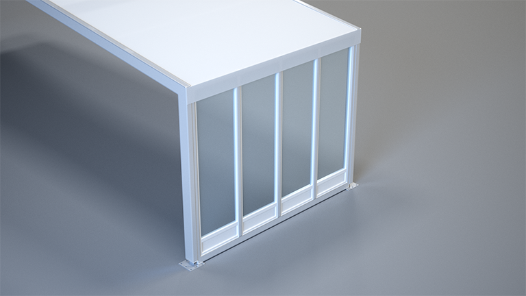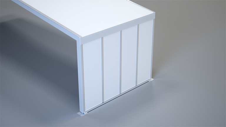 With its appearance and stability, the glass facade represents the highest quality side panelling in the event sector. It is available in a wide variety of designs, such as with plastic or aluminium frames. They are also available with uninsulated or insulated glass, and in various colours and glass tints.
