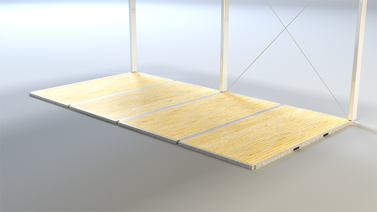 Wooden panels laid on top of steel substructure