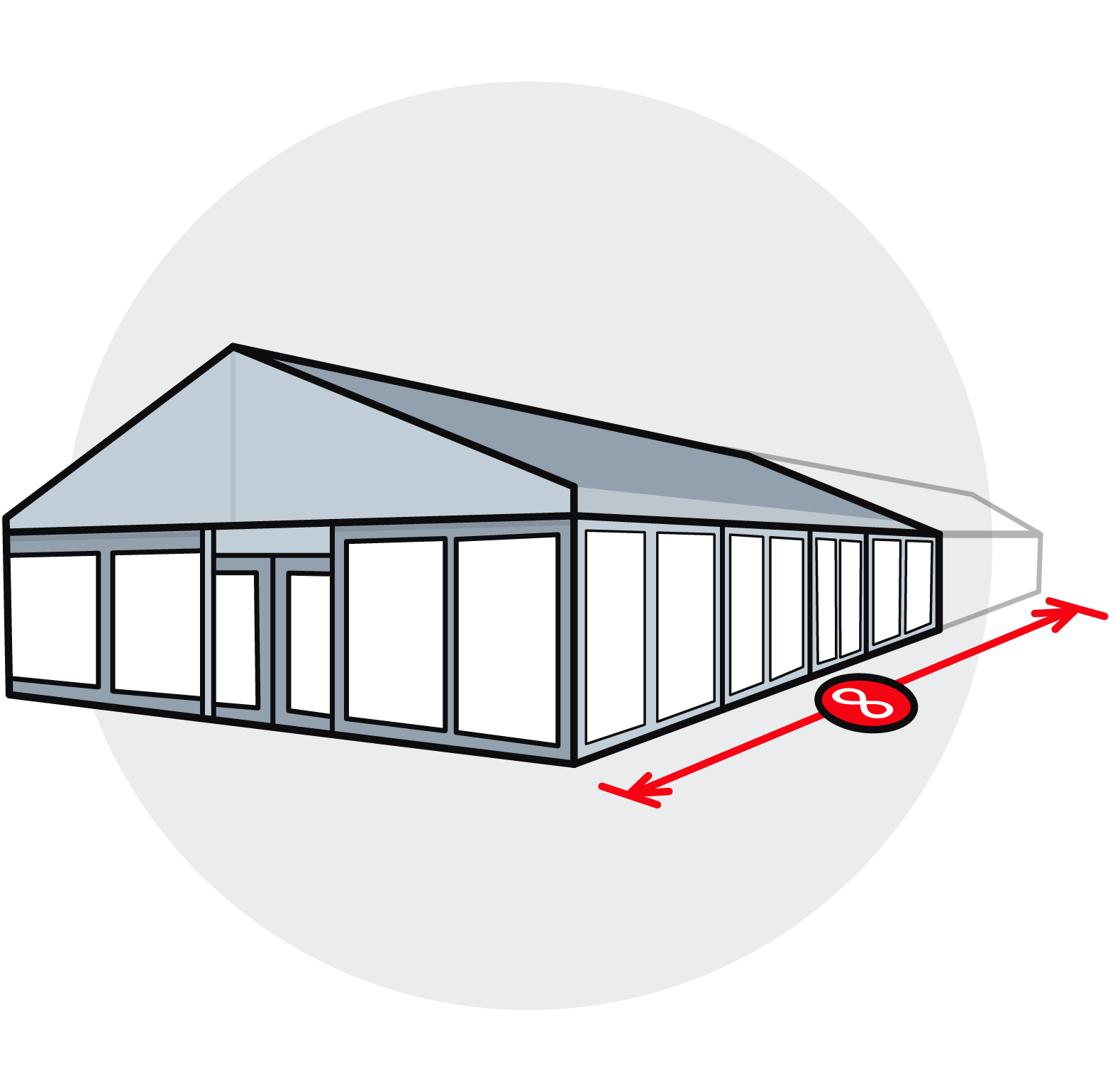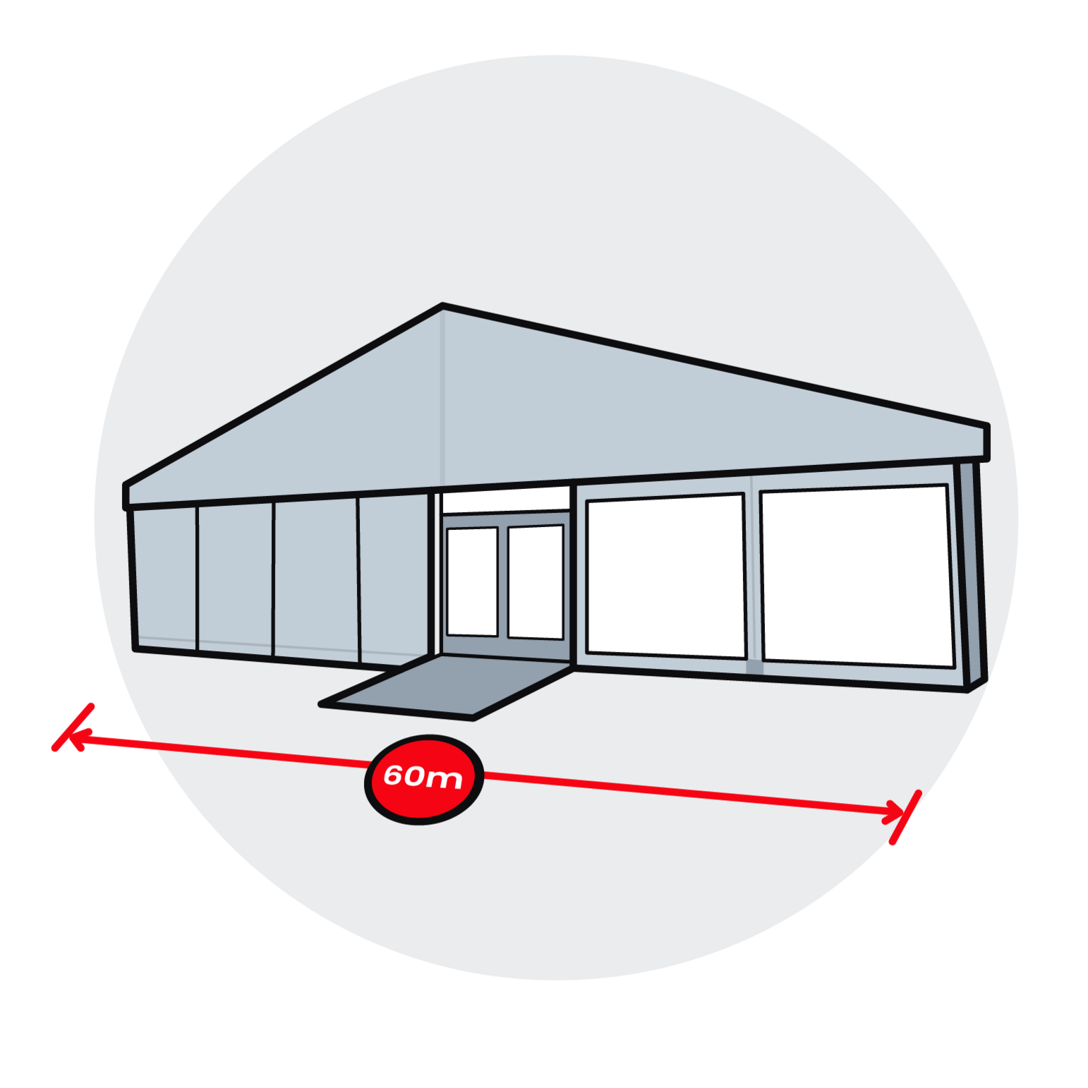 With a marquee your event is hosted in an event tent built to your required dimensions and with the right equipment. Cantilevered spans of up to 60m and side heights of up to 4m are both possible and our marquee tents’ lengths can be extended limitlessly. Each marquee is built from high quality materials with immense stability. Assembling and dismantling is completed quickly, and transport is painless so costs are kept low. We can also adapt the basic marquee and its equipment to suit your special requirements.