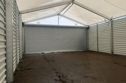 We manufacture our extremely durable and affordable roof sheeting from highly tear-resistant industrial PVC. Beneath these roofs, your storage area and all goods are protected from sun, rain, hail or frost. The material is designed for long-term service life and can be installed quickly, while replacement of damaged sections is straightforward. The translucent material also allows plenty of daylight into the building’s interior.